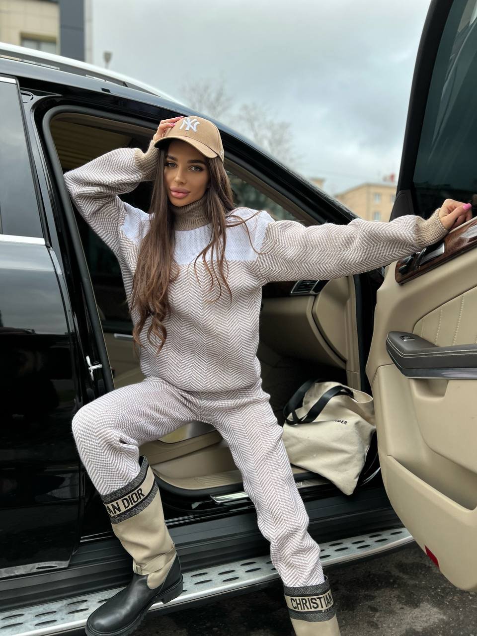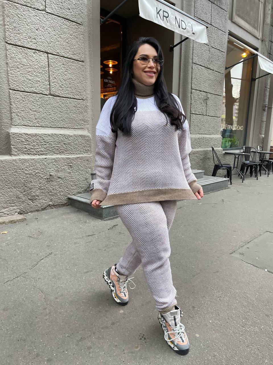 The herringbone suit is a stylish and comfortable option for everyday wear. The set includes a sweater and pants made of high-quality material with a herringbone pattern that adds originality and elegance.