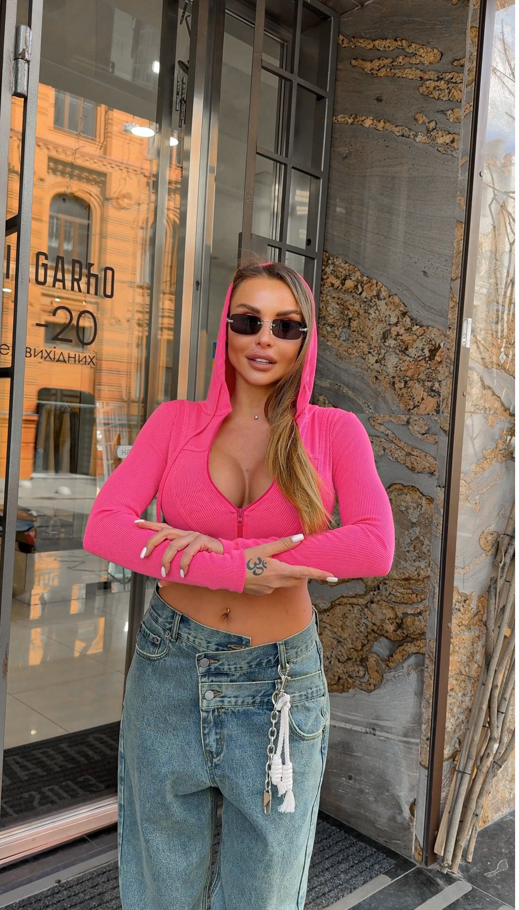 This long sleeve is ideal for creating different looks - from sporty to casual. It can be combined with jeans, trousers or skirts to create a stylish outfit. The open front zipper adds originality and practicality to the model, allowing you to adjust the comfort level.