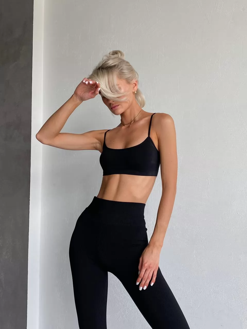 These seamless ribbed pull-on leggings are the perfect choice for creating a stylish and comfortable sporty look. Made of stretchy material, these leggings provide excellent support and comfort throughout the day. Thanks to the seamless technology, they perfectly fit the figure without causing discomfort or chafing. The leggings have a high waistband that adds extra support and visually slims the silhouette. The ribbed pattern adds a special charm and originality to them. These leggings are suitable for workouts, yoga, or for everyday wear, combining with different tops and sports bras.