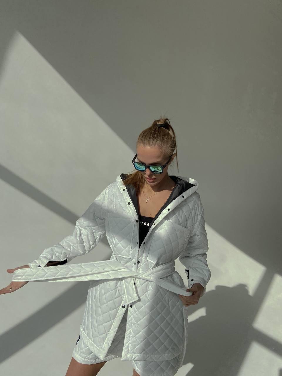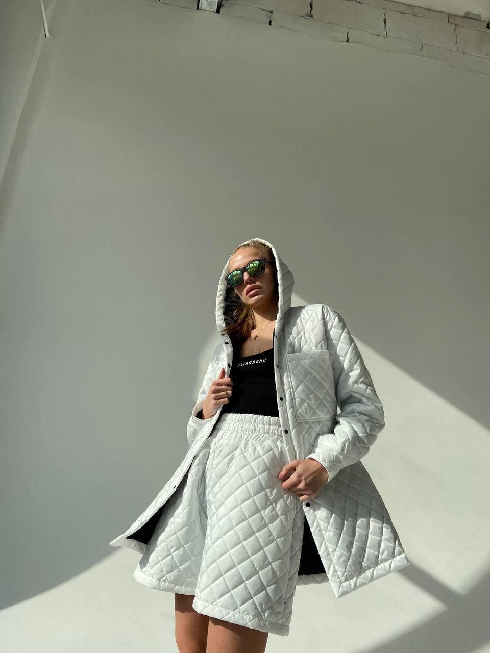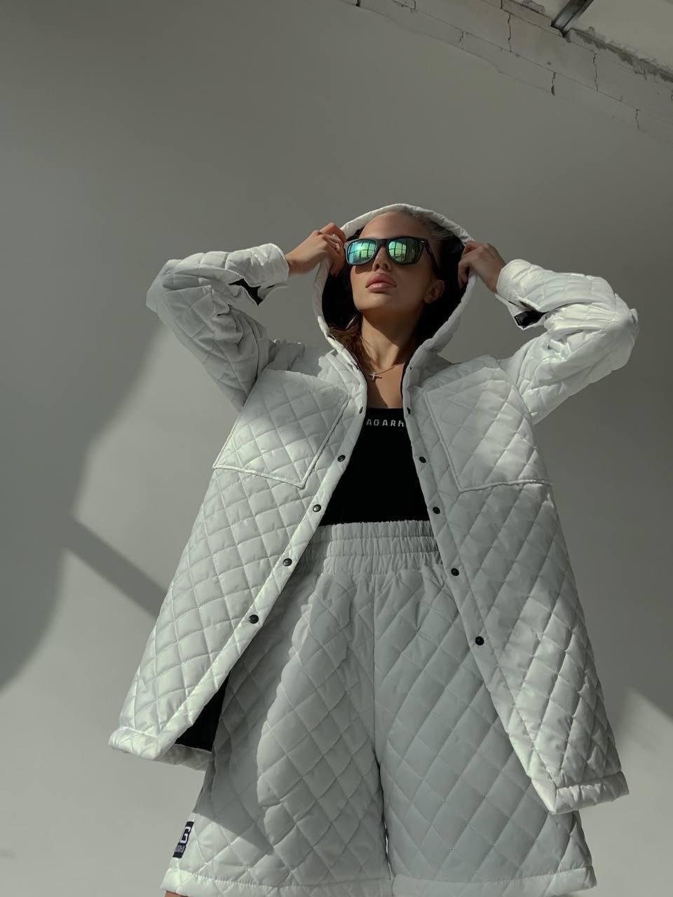 Women's shirt "ROMB" is made of high-quality cotton lacquered fabric, which provides reliable protection against wind and moisture. The filler is eco-fluff 100, which gives the product lightness and thermal insulation properties. The shirt has a decorative branded chevron that emphasizes style and quality. Thanks to its modern design and comfortable cut, this shirt will be a great addition to your wardrobe, providing comfort and style at any time of the year.