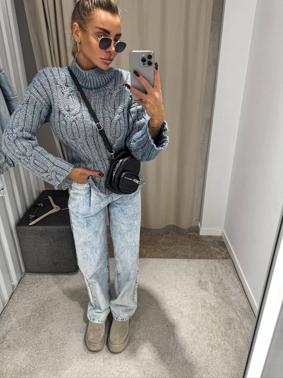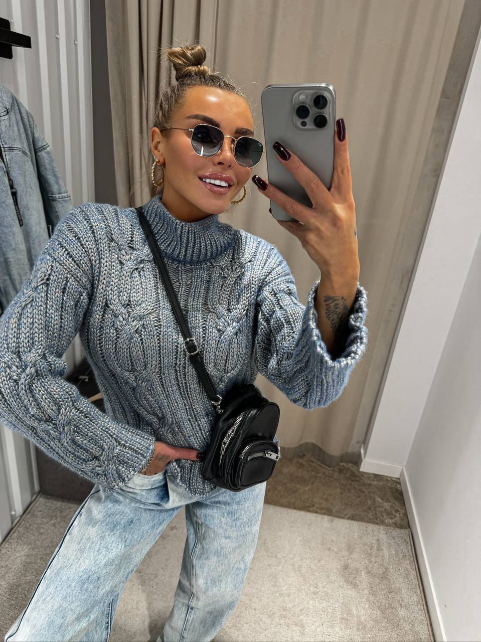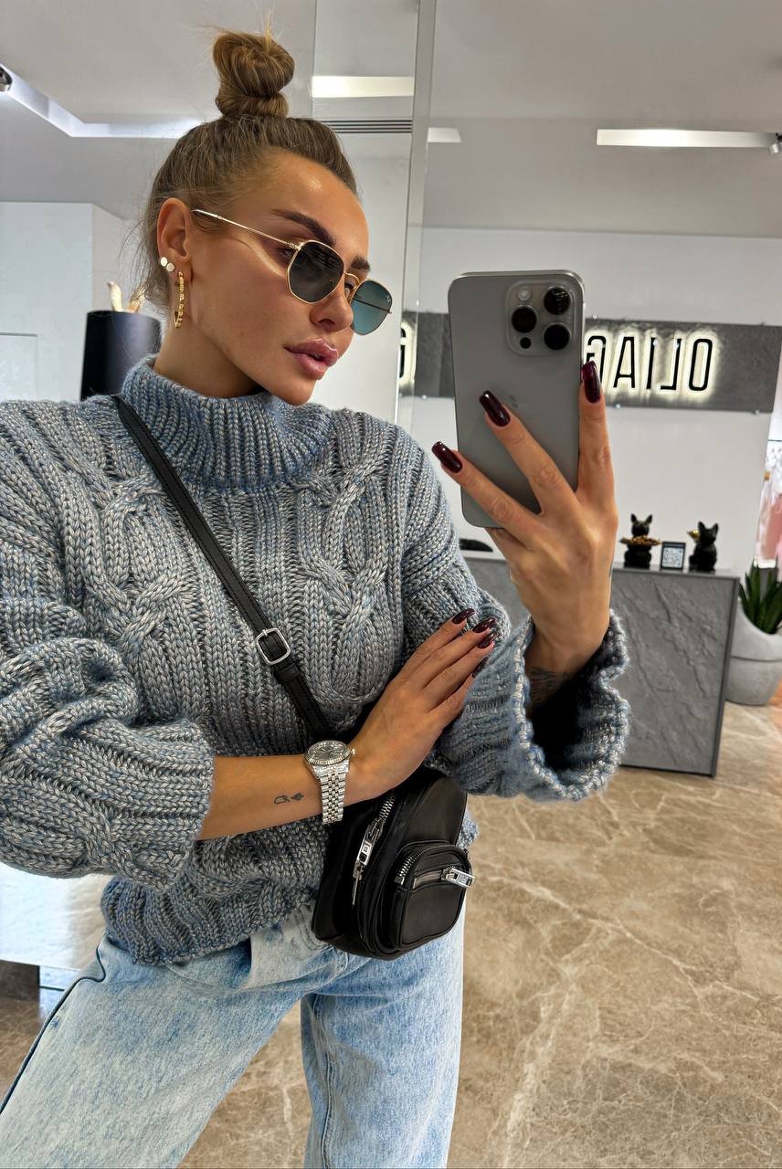This stylish women's sweater is ideal for creating a fashionable and comfortable look in the cold season. Made of high quality materials, it will keep you warm and cozy. The Rock and Roll sweater goes well with jeans and skirts, making it a versatile choice for any wardrobe. The high collar protects from the cold, and the voluminous knitted pattern adds uniqueness to your look. This sweater is suitable for everyday wear and special occasions, creating your own unique style.
