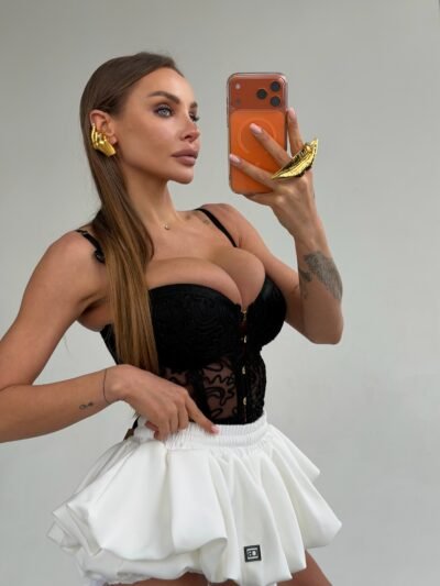 Комплект складається з топу та спідниці з чудовим синьо-білим принтом. Топ має глибокий виріз та декоративні зав’язки, що додають жіночності та романтичності образу. Довгі рукави з розширеними манжетами створюють легкий та повітряний силует. Спідниця має вільний крій, що забезпечує комфорт під час носіння.