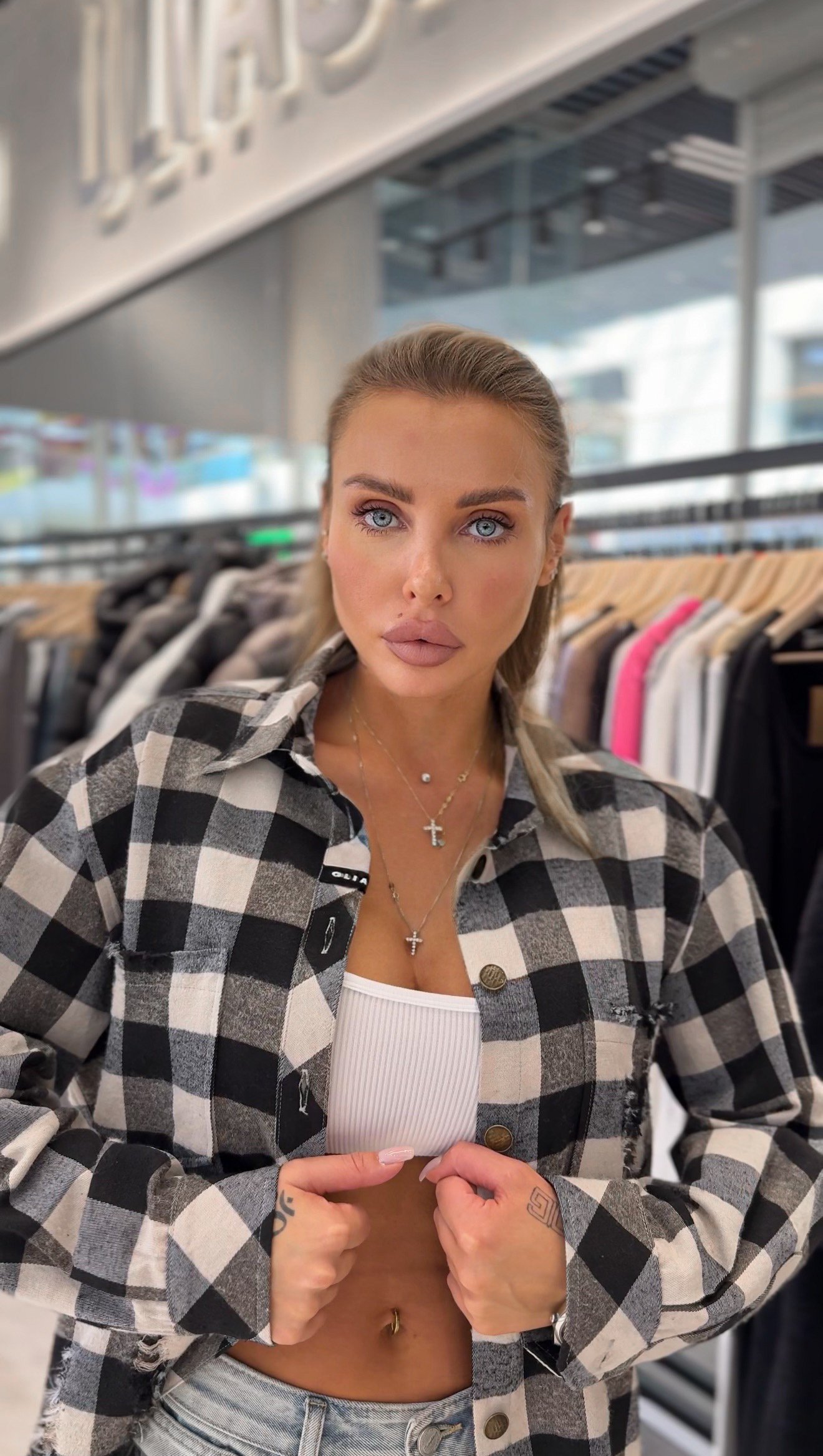 Щоб виміряти обхват талії, спочатку підніміть або зніміть сорочку, потім встаньте прямо і видихніть. У цьому положенні тримайте край мірної стрічки на пупці і оберніть її навколо найвужчої частини талії. Переконайтеся, що мірна стрічка щільно прилягає до тіла і паралельна до землі.