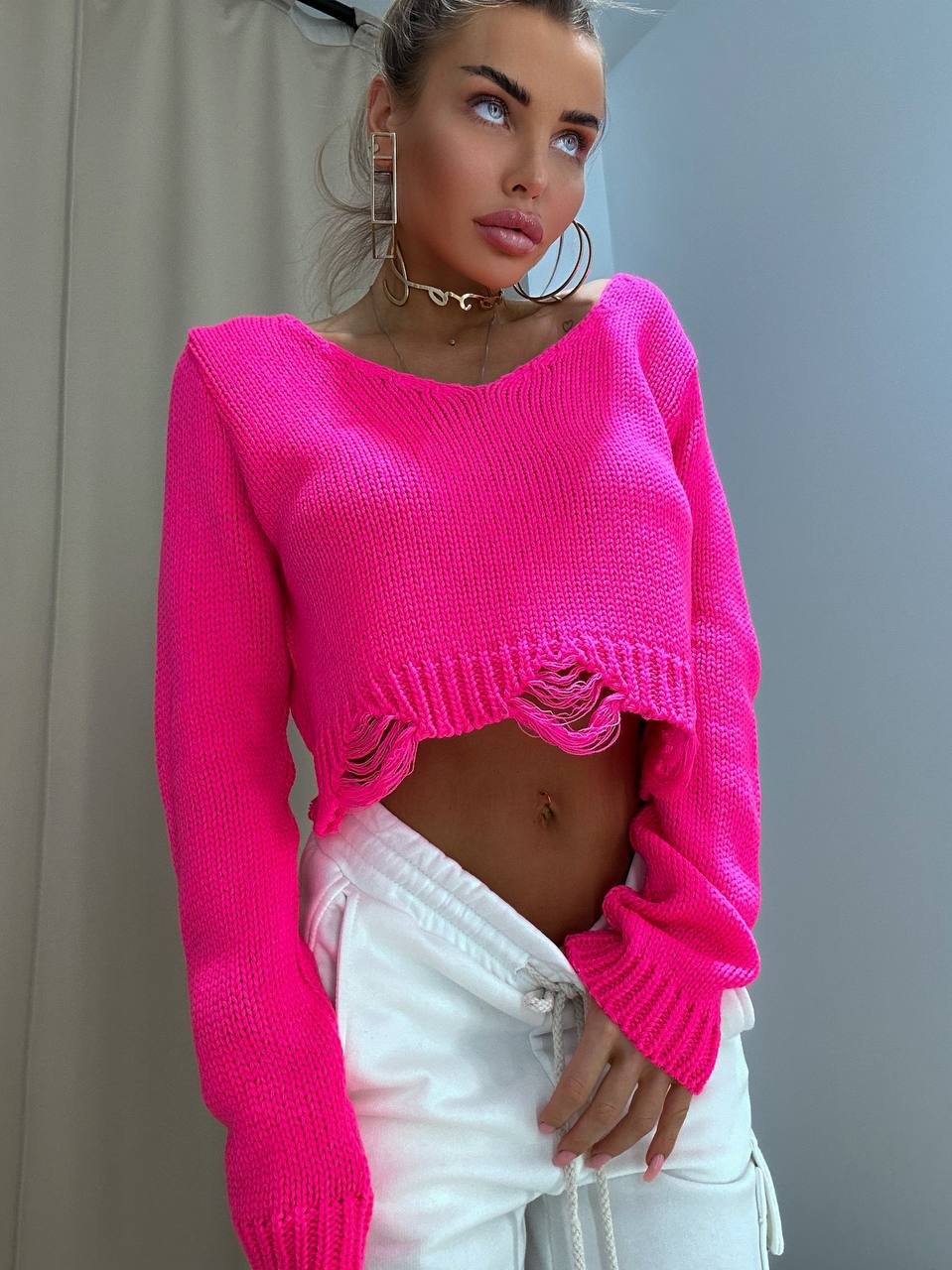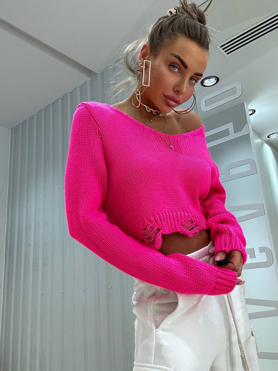 Светр Хіпстер – неон є стильним та сучасним елементом гардеробу, який поєднує в собі комфорт та модний вигляд. Виготовлений із суміші бавовни та акрилу, цей светр забезпечує тепло та м’якість. Модель має вільний крій та відкритий нижній край з декоративними розривами, що додає образу сміливості та унікальності. Довгі рукави та округлий виріз горловини роблять цей светр ідеальним для створення кежуал образу.