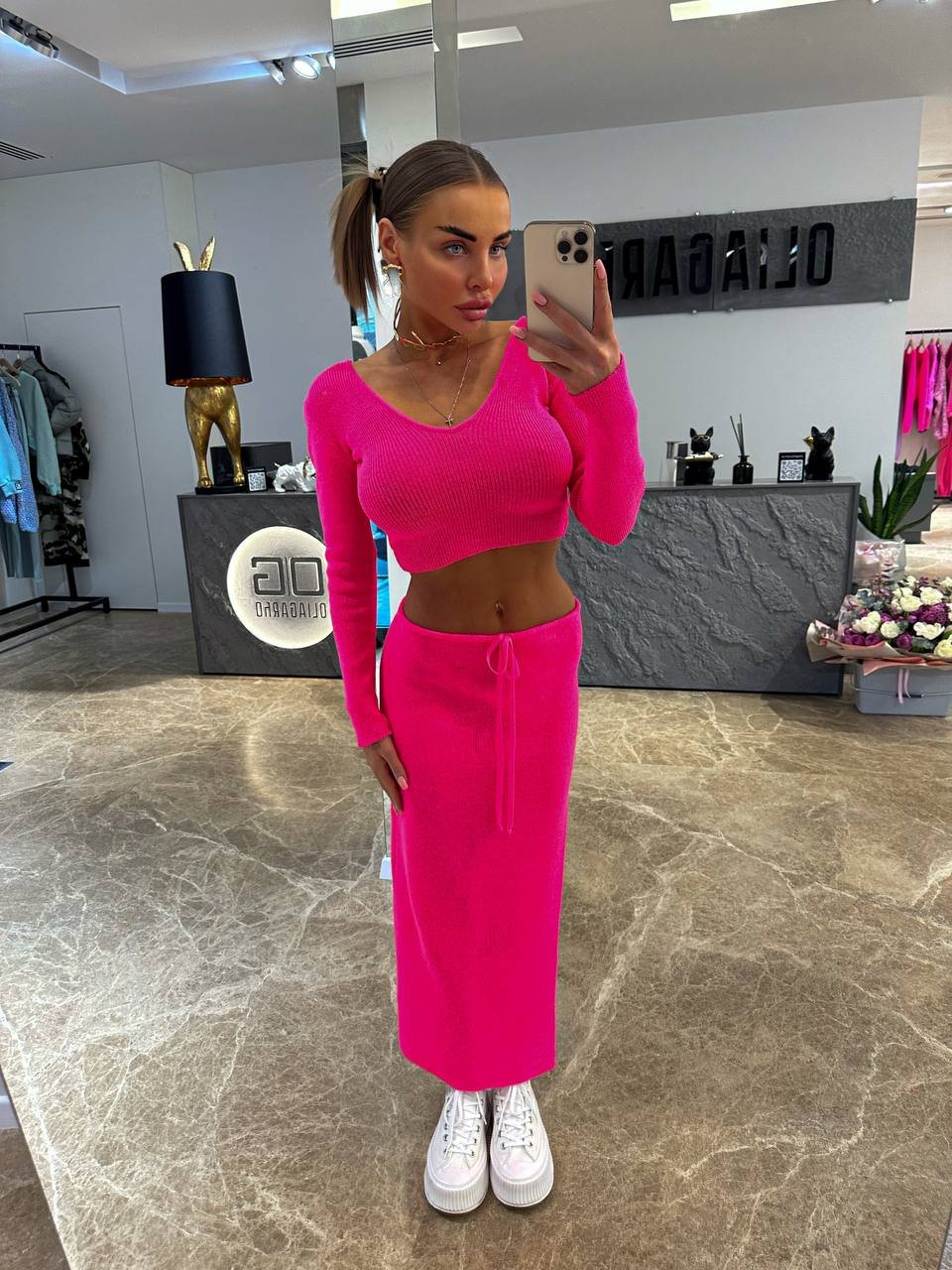 Костюм "Sandra" - это стильный и комфортный выбор для вашего гардероба. Изготовлен из высококачественной ткани, состоящей из 30% хлопка, 30% полиэстера и 40% акрила, этот костюм обеспечивает комфорт и удобство в течение всего дня. Костюм состоит из укороченного топа с длинными рукавами и юбки макси с регулируемой талией на завязках. Глубокий V-образный вырез добавляет элегантности, а яркий цвет делает костюм отличным выбором для любого события.