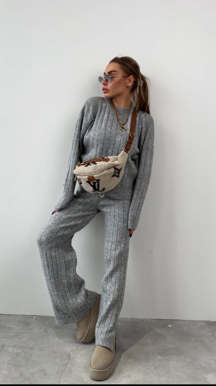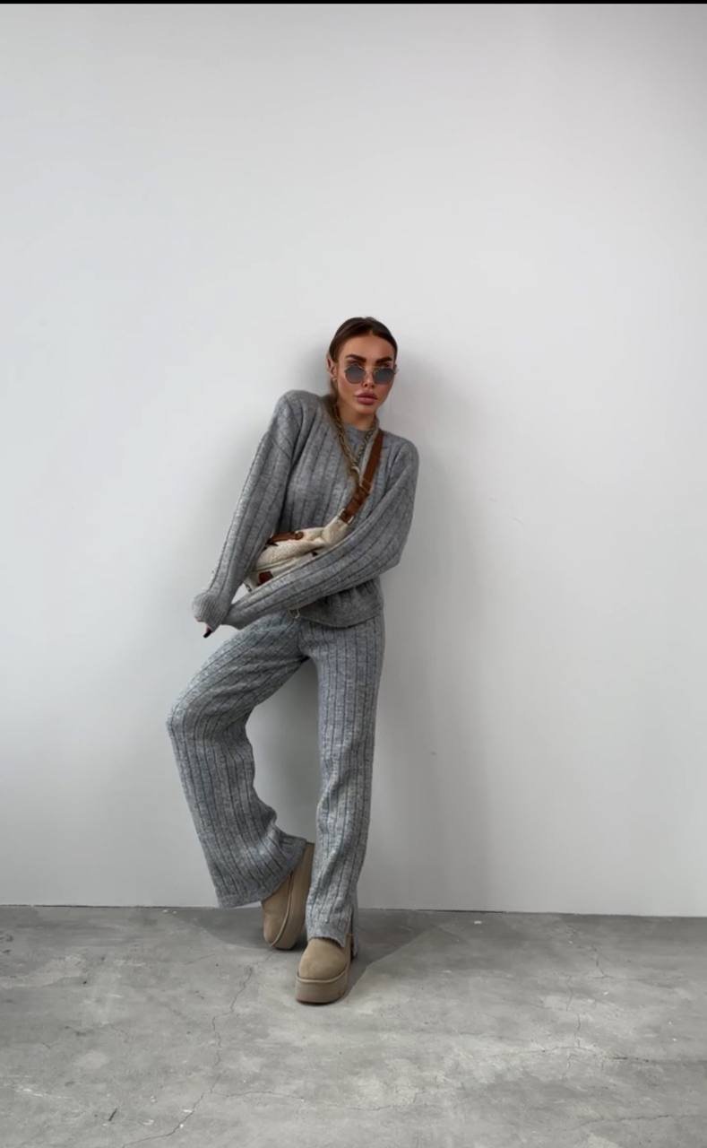 Трикотажный костюм "Уэльс" из качественной ткани (50% шерсть, 50% полиэстер) сочетает комфорт и современный стрит стайл. Модный рельефный дизайн, свободный крой и базовый цвет делают его универсальным для ежедневных образов.