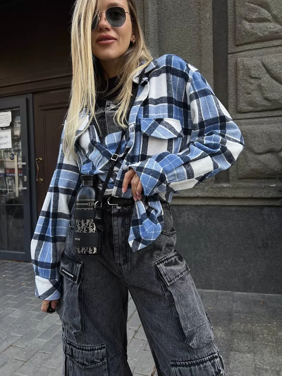 Модель имеет классический воротник и длинные рукава с манжетами на кнопках, что добавляет элегантности. Декоративные карманы на груди делают рубашку еще более практичной и стильной. Узор в клетку придает изделию современный и динамичный вид, что делает его идеальным выбором для создания как повседневных, так и более формальных образов. Рубашка OXFORD легко сочетается с джинсами, брюками или юбками, создавая разнообразные стилистические решения.