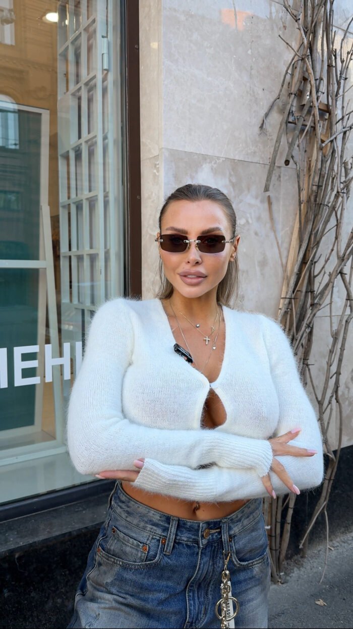 Кроп топ "Ангора" - это элегантный и стильный вариант для вашего гардероба. Изготовлен из мягкой и приятной на ощупь ткани, этот топ обеспечивает комфорт и тепло. Топ имеет укороченный крой с длинными рукавами и нежной текстурой, что подчеркивает женственность. Застежка на одну пуговицу спереди добавляет оригинальности и делает этот топ идеальным для создания различных образов.