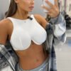 Измерьте свой обхват груди с помощью сантиметровой ленты, проведя ее под мышками и по самой выступающей части. Необходимо, чтобы мерная лента прилегала к телу и была параллельна к земле.
