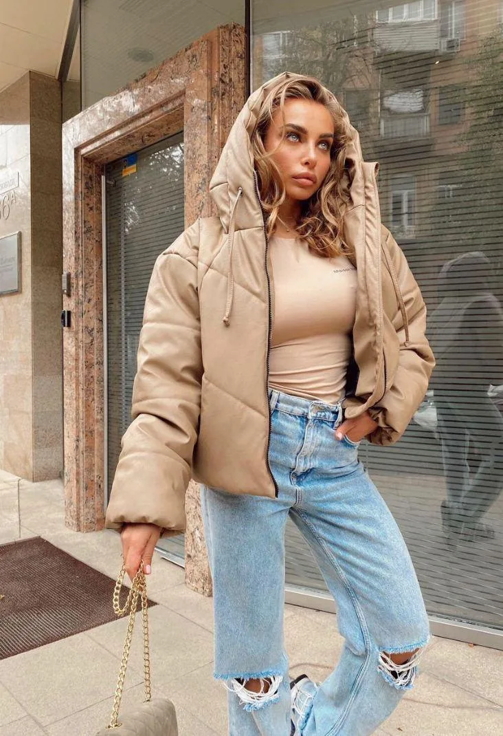 Женская куртка ВАУ - стильное решение для прохладного времени года. Выполненная из матовой эко-кожи, которая не продувается и обладает водоотталкивающими свойствами, эта модель обеспечивает надежную защиту от непогоды. Наполнитель из эко пуха гарантирует превосходную теплоизоляцию, сохраняя комфорт в любых условиях.